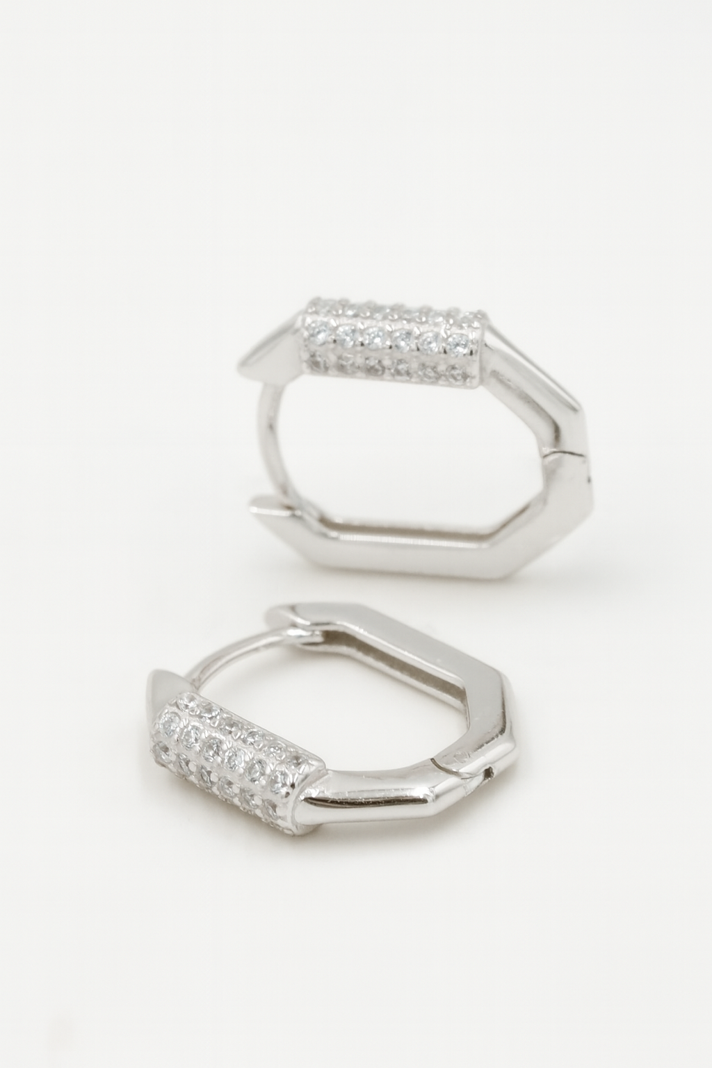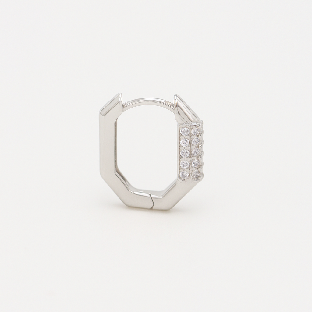 Der Rumi Ohrring ist sleek, edgy und ein kleines bisschen unerwartet. Mit seiner markanten, eckigen Form und genau der richtigen Portion Sparkle ist er das cool-girl Classic, von dem du nicht wusstest, dass du es brauchst – bis jetzt.